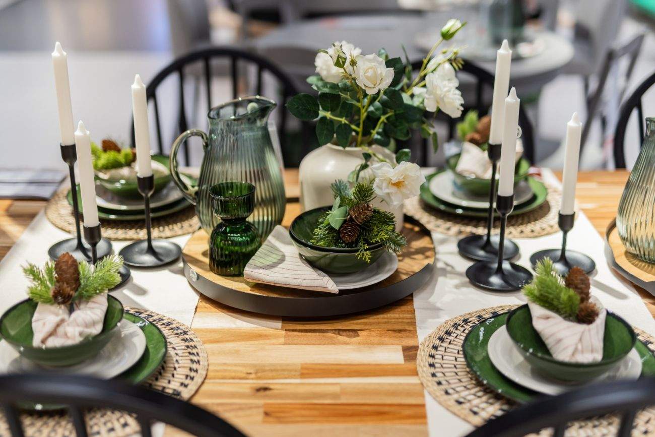 “Ikdienišķi sadzīves priekšmeti var kalpot kā dekorācijas – stikla trauku var pārvērst par svečturi, puķupodu izmantot galda piederumiem, uz koka dēlīša salikt sveces, bet virtuves lāpstiņu kādā no svētkiem raksturīgajām krāsām izmantot deserta dekorēšanai. Radoši apspēlējot ikdienā izmantotos priekšmetus, galda klājums ir personisks, omulīgs un aicinošs.”