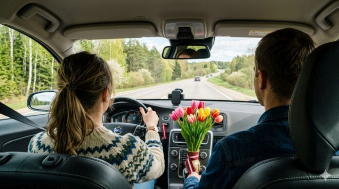 Vīrietis gan palūdza sievietei, lai viņa sēžas pie stūres transportlīdzeklim, jo viņam pašam nav transportlīdzekļa vadīšanas tiesību.
