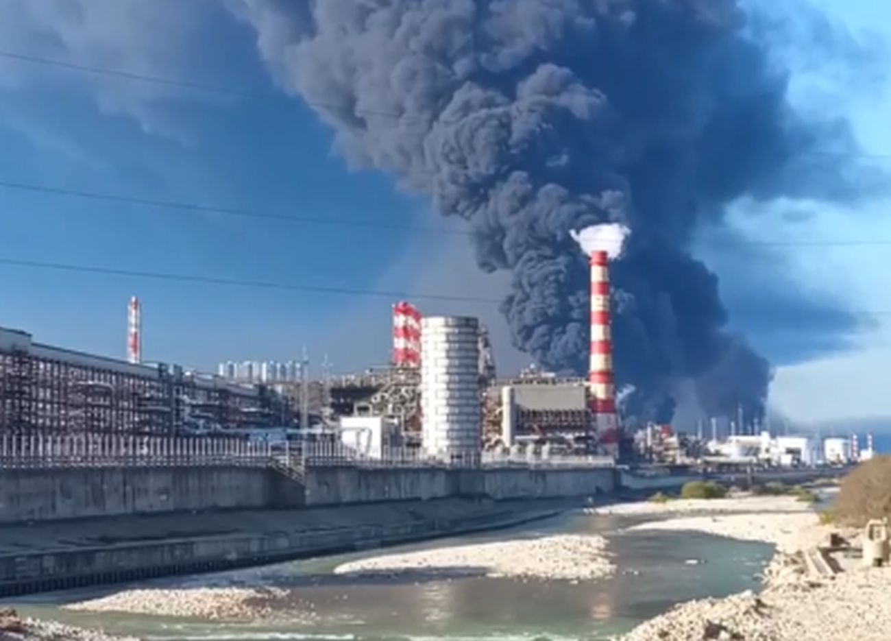 Ukrainas dronu uzbrukuma rezultātā ostas rezervuāru parkā izcēlās tik milzīgs ugunsgrēks, ka tas bija redzams pat no kosmosa. Iepriekšējais ugunsgrēks skāra pilsētas ostas un naftas termināļa infrastruktūru 16. aprīļa naktī, kā rezultātā Melnajā jūrā notika milzīga naftas noplūde aptuveni 10 000 kvadrātmetru platībā.